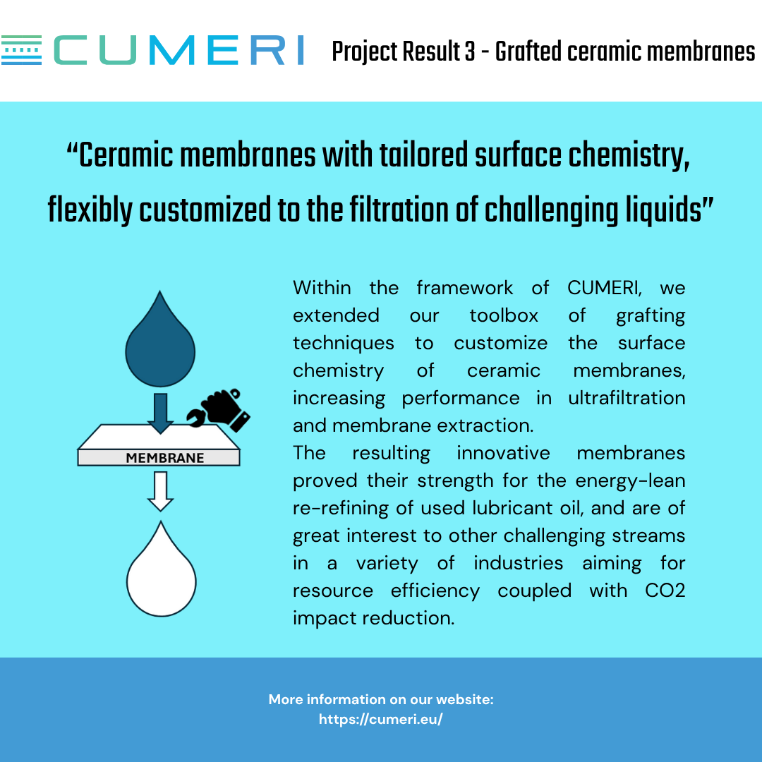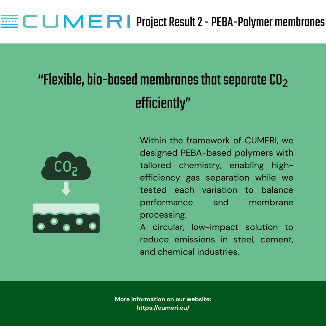 CUMERI aims to tackle the challenges of climate neutrality and industrial resilience, which are at the forefront of the objectives outlined in the European Green Deal. Customized membranes which are designed for specific applications offer a promising solution.
